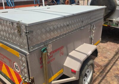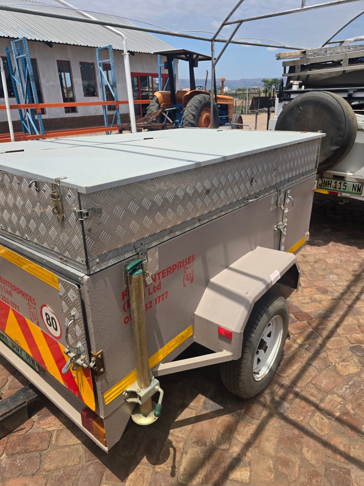 • Fox Enterprises boxed trailer (grey, checker-plate lid)